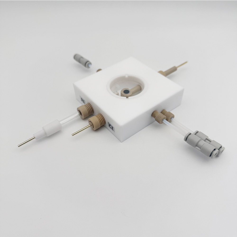 7.In addition to the three electrode holes, the Raman cell also has two small holes, which can be used to circulate liquid in and out.